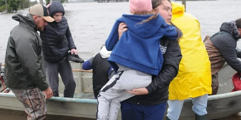 Ciclone provoca inundação em Mostardas, no Litoral Norte, e famílias são resgatadas