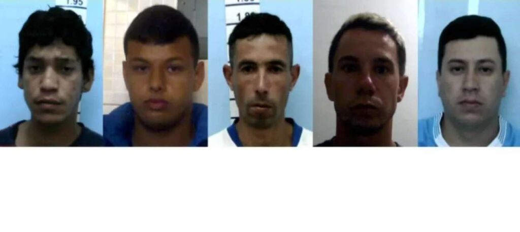 Os detentos que fugiram são: Jéferson Rodrigues Lopes, de 29 anos; Marcos José Dal Molim Junior, de 30 anos; Álisson Tomás Lopes da Silva, de 27, Bruno da Silva Mateus, de 23 anos; e Diogo da Silva Córdova, de 40 anos.