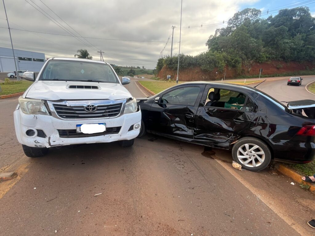 Um acidente de trânsito foi registrado na manhã desta quinta-feira, 26 de fevereiro de 2026, no trevo de acesso a Água Santa, na Perimetral. A ocorrência mobilizou a equipe de atendimento dos Bombeiros Voluntários às 7h26, após acionamento feito por populares.