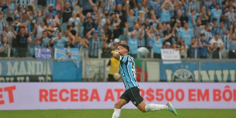 Quando a primeira etapa se encaminhava para o empate, Cristaldo abriu o placar com uma pintura de gol. O camisa 10 recebeu a bola de Mayk, perto da meia lua da grande área, fintou o zagueiro e acertou uma paulada de fora da área. Golaço. Era também o último lance da primeira etapa, vencida pelo Grêmio.