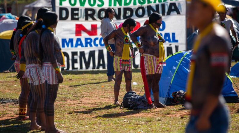 Povos indígenas montam acampamento contra o marco temporal