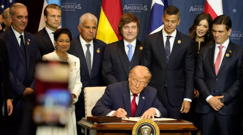 O presidente dos Estados Unidos, Donald Trump, anunciou a coalizão entre países da América Latina para combater cartéis. O republicano recebeu, neste sábado (7), líderes latinos para o evento batizado como “Escudo da América”. “Vamos fazer coisas incríveis, a região de vocês foi abandonada pelos EUA, que olhou para regiões em que nem era bem recebido”, disse o presidente.