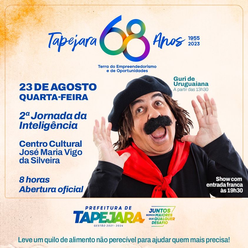 Às 19h30, o Guri de Uruguaiana fará seu show com entrada franca. Quem puder, pode levar um quilo de alimento não perecível.