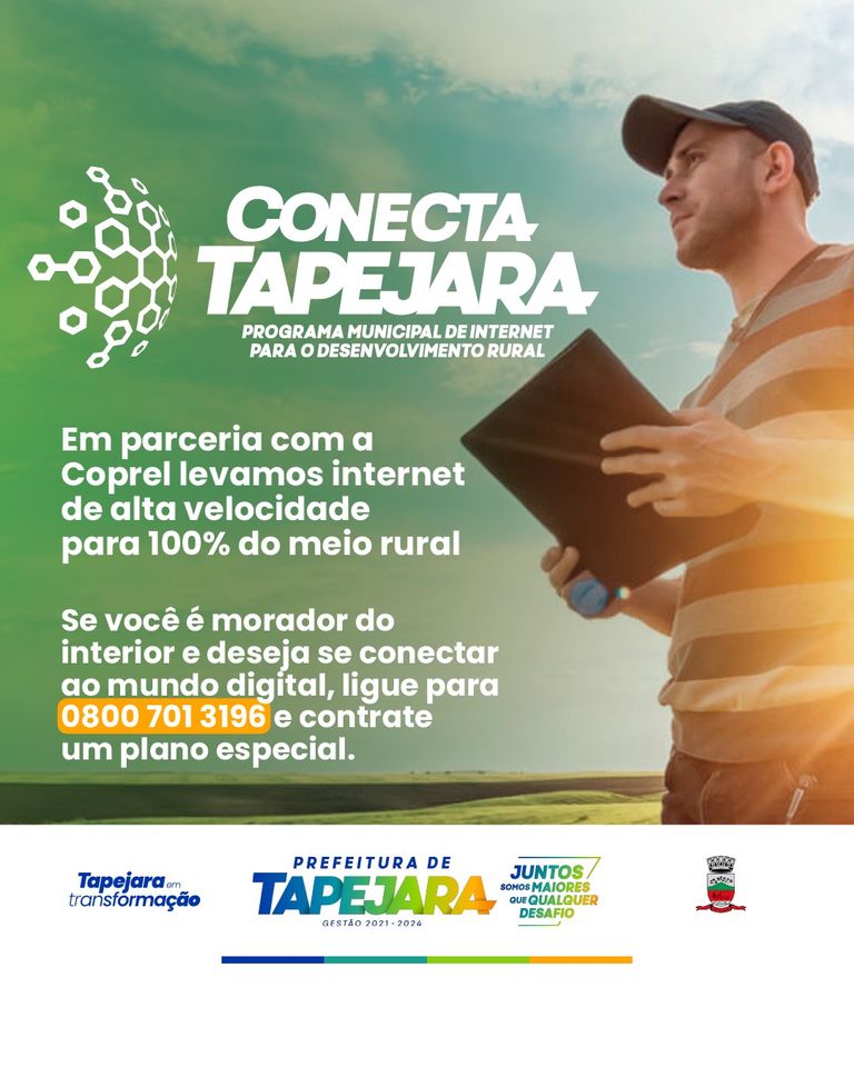 R$ 2 milhões de investimentos da Prefeitura de Tapejara no Programa Conecta Tapejara, maior projeto de conexão digital rural da história.