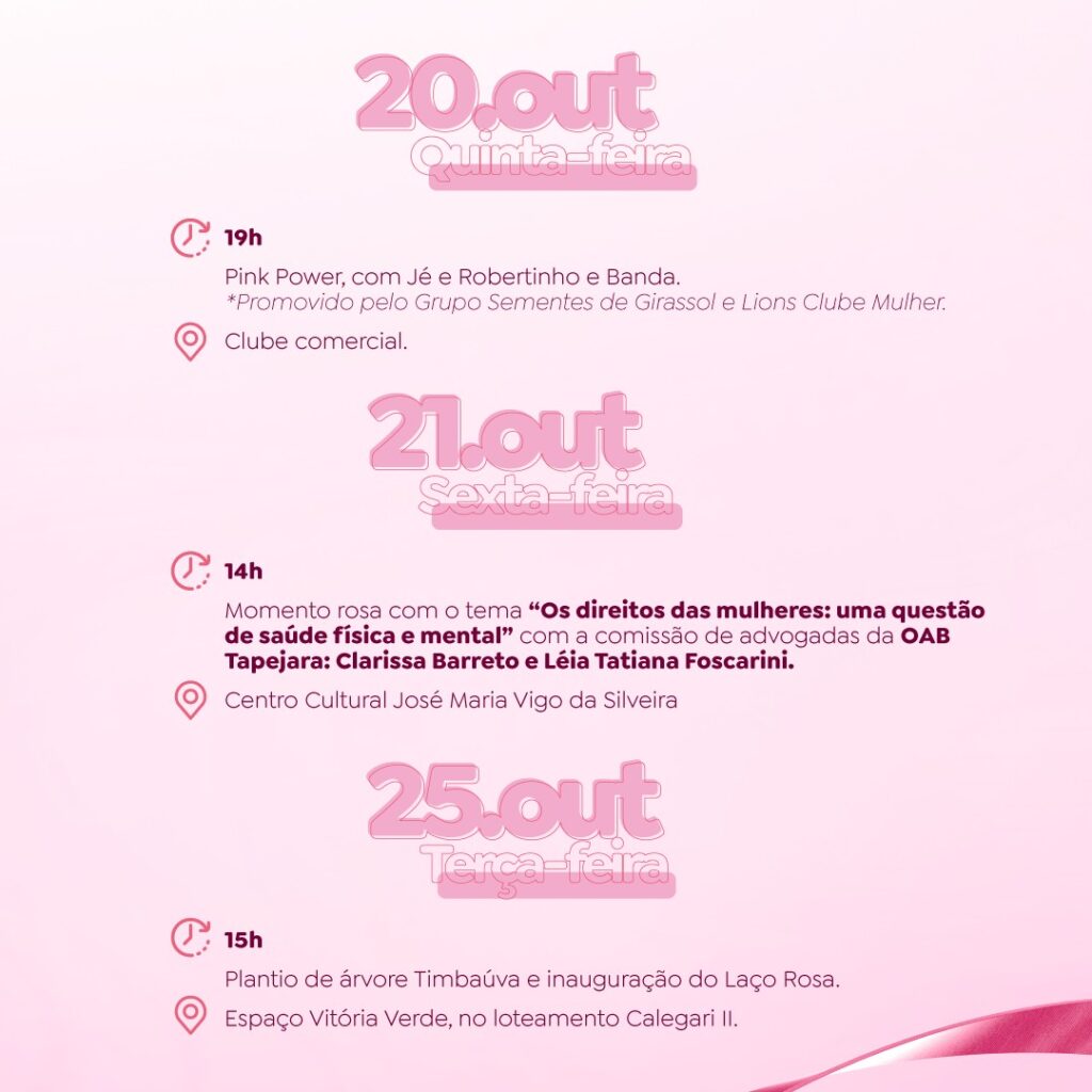 CONFIRA A PROGRAMAÇÃO DO OUTUBRO ROSA EM TAPEJARA