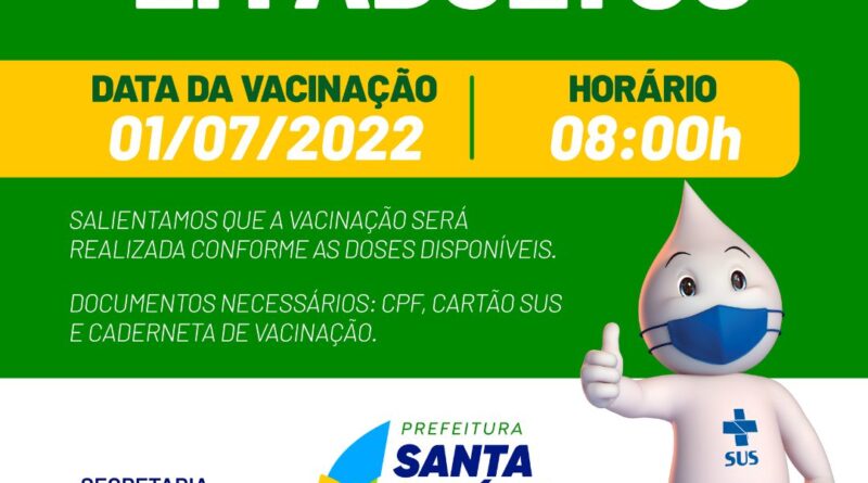 As doses serão realizadas conforme disponibilidade. É necessário levar consigo Cartão SUS, CPF e caderneta de vacinação.