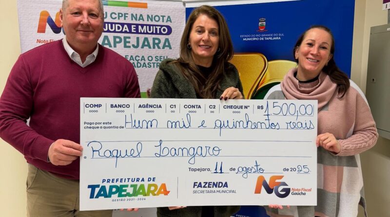 Conheça os ganhadores do sorteio de julho do Nota Fiscal Gaúcha em Tapejara
