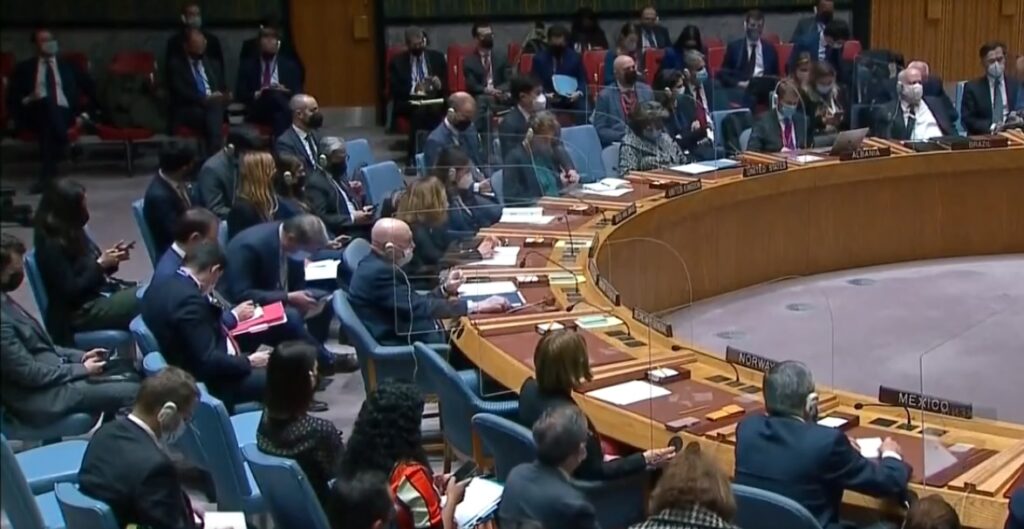 A votação do conselho de 15 membros foi processual para que a Rússia não pudesse exercer seu veto. Uma resolução convocando a sessão da Assembleia Geral da ONU (Organização das Nações Unidas) foi adotada com 11 votos sim. A Rússia votou contra, enquanto China, Índia e Emirados Árabes Unidos se abstiveram. O Brasil foi a favor.