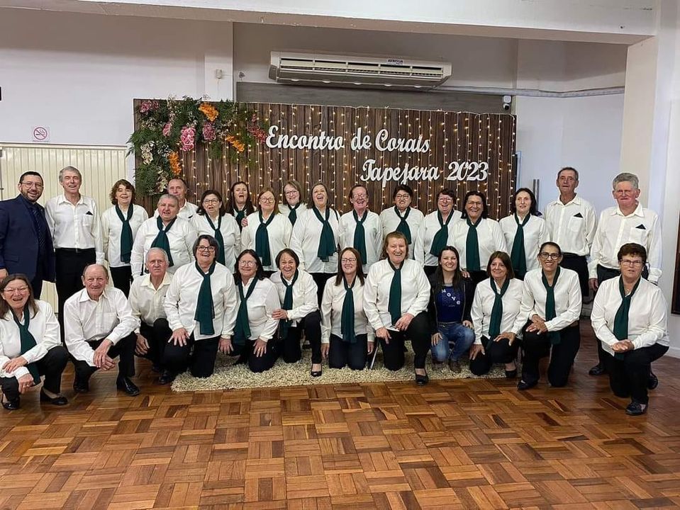 No último sábado (19/08) o Coral “Sonhar é Viver” do Grupo da Terceira Idade de Santa Cecília do Sul esteve presente no Encontro de Corais da programação alusiva ao mês comemorativo de 68 anos de emancipação político-administrativa de Tapejara. Evento este que foi realizado no Centro Cultural José Maria Vigo da Silveira, contou com 7 grupos corais da região. Sob regência do professor Ervan Silveira, o coral ceciliense interpretou as músicas “É um Previlégio Ser da Terceira Idade” (de autoria própria do grupo) e “Amor Distante” (clássico da música sertaneja, originalmente do grupo Os Filhos de Goiás). Com entusiasmo e energia contagiante, o Coral “Sonhar é Viver” fez jus ao seu nome, bem representando mais uma vez o município de Santa Cecília do Sul.