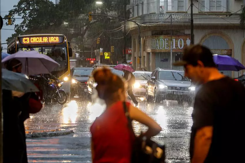 Na quinta-feira (26), a frente avançará sobre o Rio Grande do Sul, com chuvas moderadas a fortes no Norte, Nordeste, Serra, Litoral Norte, Vales e Região Metropolitana de Porto Alegre, acumulando 30 a 70 mm/dia.