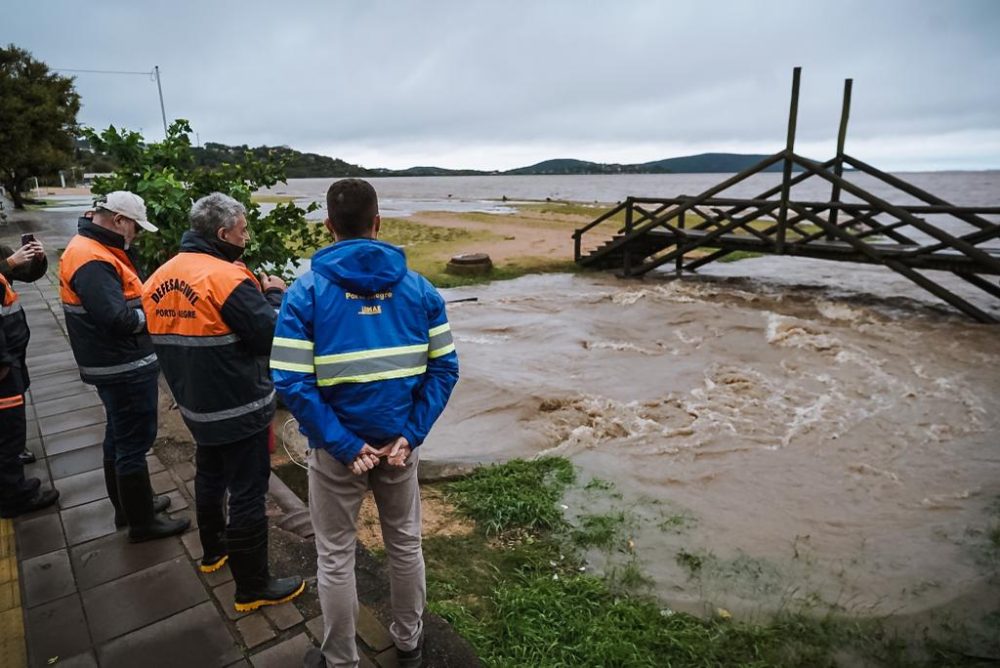A orla do Guaíba está parcialmente interditada aos visitantes e o uso dos equipamentos esportivos do local estão suspensos. A prefeitura orientou a população que evite circular na área.
