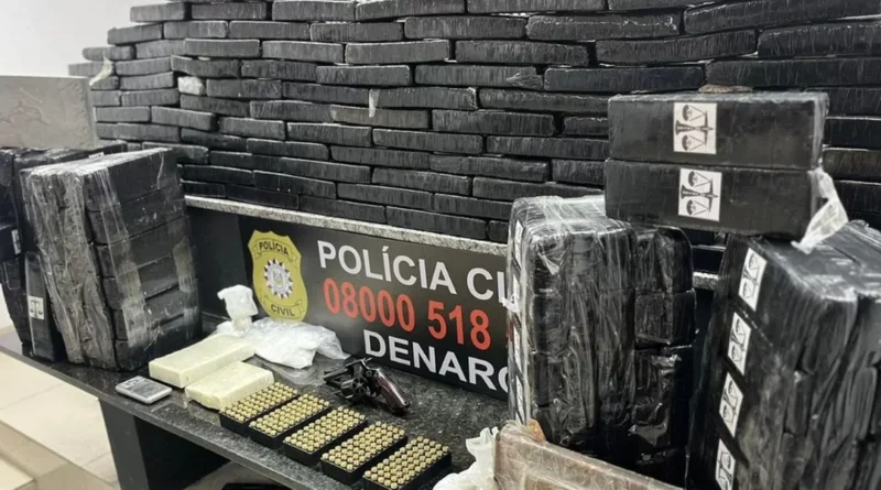 Houve a apreensão de 135 quilos de maconha e 11 quilos de cocaína e insumos, além de quatro prensas hidráulicas para preparar e embalar as drogas para venda, ferramentas para marcação da cocaína, um revólver calibre 38, munição de diversos calibres, balanças de precisão e uma motocicleta cadastrada em nome de um dos suspeitos.
