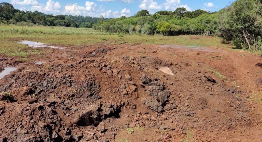 Foi realizado Levantamento Ambiental e constatado a presença de 380 bovinos, os quais semiconfinados, destes 6 animais apresentam dificuldades de locomoção e debilidade física, quando na inspeção os mesmos não possuíam água em seus coxos e a sedentação dos animais está ocorrendo sobre área de preservação permanente (banhado, córrego e nascentes), bem como descarte de animais mortos em área de preservação permanente, onde são cobertos por terra gerando grande quantidade de chorume.