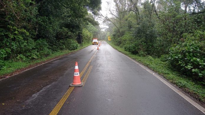 A Brigada Militar informou, na tarde deste domingo, o bloqueio total da ERS-020, entre o Km 79 e Km 87, em de São Francisco de Paula, na região nordeste do Estado. No momento, guarnições estão no local realizando policiamento ostensivo rodoviário e a liberação da rodovia aguarda o parecer da equipe de engenharia do Departamento Autônomo de Estradas de Rodagem (DAER-RS).