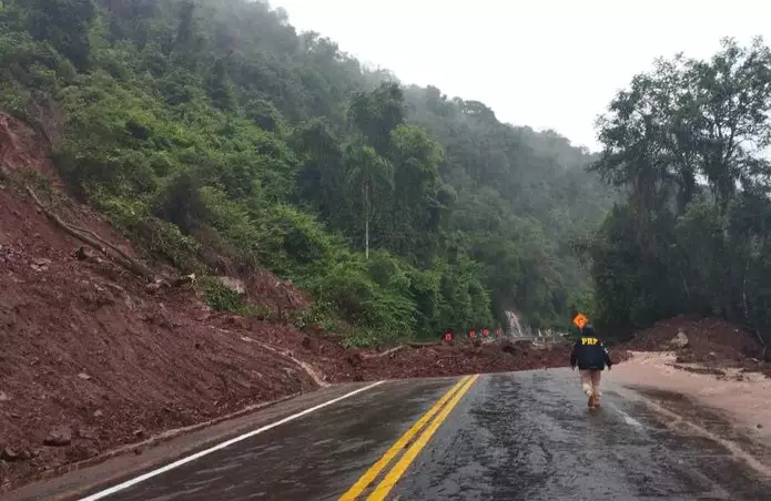 Segundo a Polícia Rodoviária Federal (PRF), um deslizamento no km 167 da rodovia, próximo à Vila Cristina, causou a interrupção total do tráfego em ambas as direções. Não há previsão de quando a via será liberada. Como medida de precaução, o trânsito está bloqueado do km 160, em Galópolis, até o km 170, em Vila Cristina.