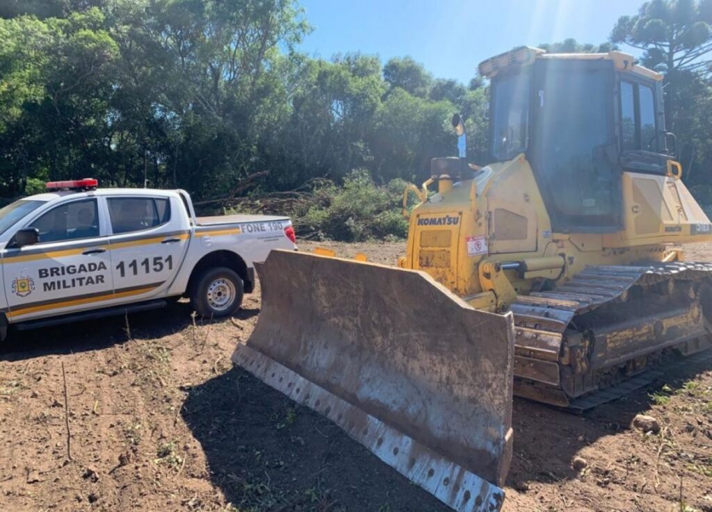 No local, ainda foi constatado o emprego de uma máquina pesada (Trator de esteira), a qual estava no local e foi apreendida. Os policiais realizaram levantamento ambiental e confeccionaram Bo/Cop para o proprietário do trator e da área degradada.