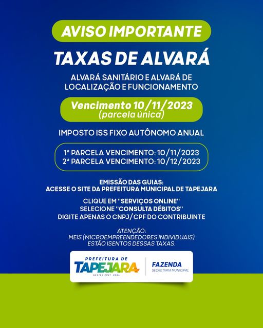 No dia 10 de novembro encerra o prazo, para pagamento em parcela única, de Alvará Sanitário e Alvará de Localização e Funcionamento em Tapejara.