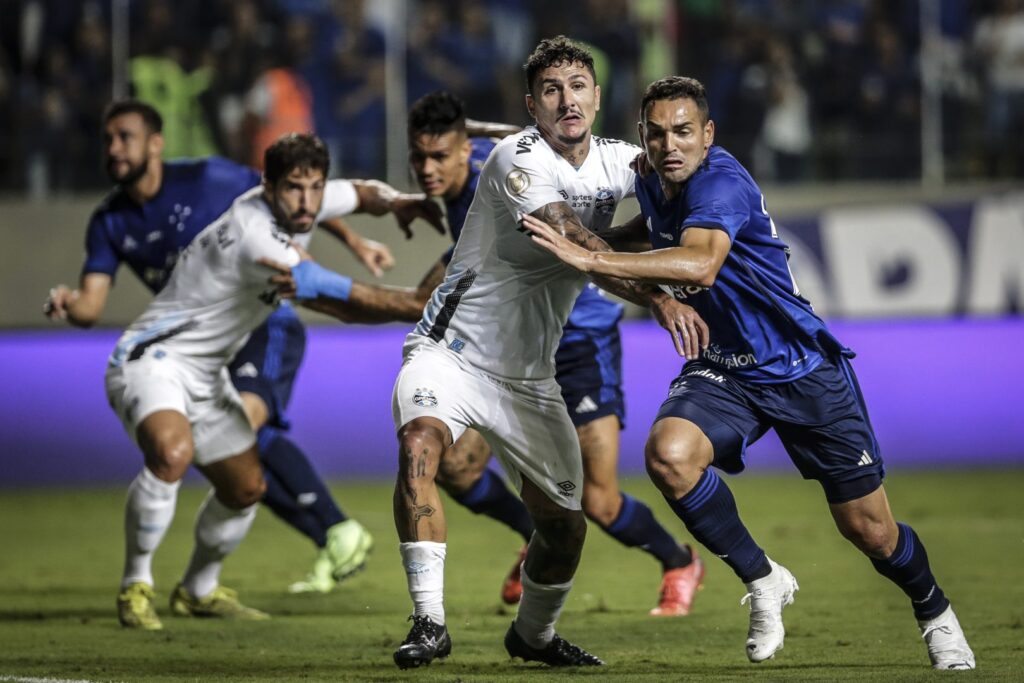 Já o Cruzeiro teve um escanteio a seu favor aos 28’, quando a bola foi colocada na área e Gilberto subiu para desviar de cabeça, mas Gabriel Grando defendeu. Na sequência, foi a vez de Bruno Rodrigues arriscar de longa distância, obrigando o goleiro gremista a voar, espalmando pela linha de fundo.