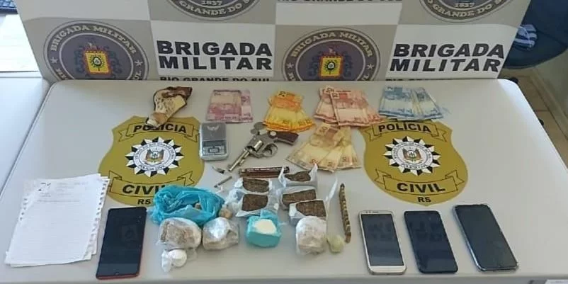 A proprietária da casa onde foram cumpridos os mandados de prisão foi presa em flagrante por tráfico de drogas, pois foram encontradas, no interior da residência, diversas porções de crack, cocaína e maconha, além de munição calibre .9mm.