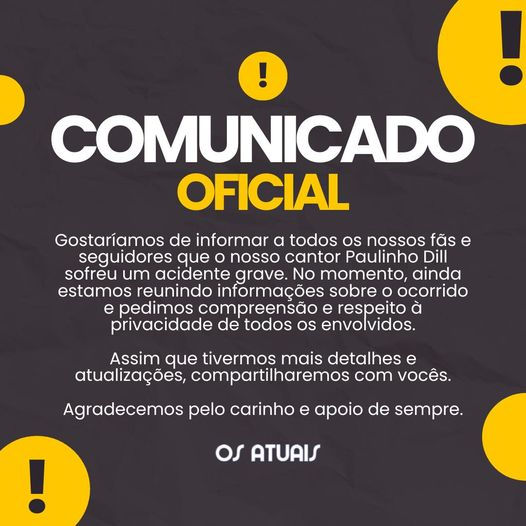 Nas redes sociais, a banda Os Atuais compartilhou um comunicado confirmando a gravidade do acidente, e pedindo privacidade neste momento. Por fim, o grupo informa que atualizará sobre o estado de saúde do cantor assim que possível.