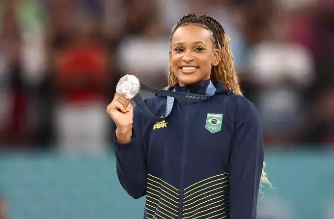 Rebeca Andrade conquistou sua quarta medalha na história das Olimpíadas, nesta quinta-feira (1º), ao ficar com a prata na final do individual geral feminino da ginástica artística em Paris 2024. O ouro ficou com Simone Biles, lenda da ginástica.