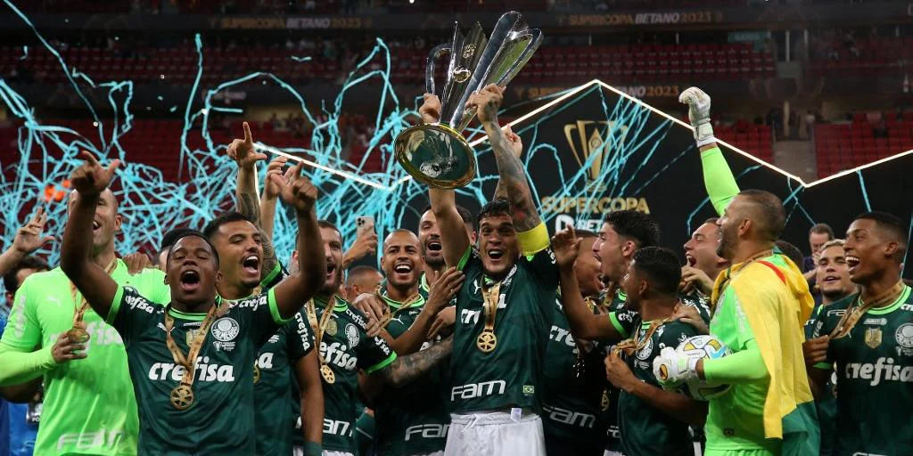 O Palmeiras se tornou campeão da Supercopa do Brasil ao vencer o Flamengo por 4 a 3 neste sábado, em um jogo emocionante no estádio Mané Garrincha, em Brasília. No duelo, marcado por várias idas e vindas no placar, os paulistas conquistaram seu primeiro título na competição com gols de Raphael Veiga (38′ e 58′) e Gabriel Menino (45’+4 e 74′). Gabigol (26′ e 51′) e Pedro (61′) balançaram as redes para os cariocas.