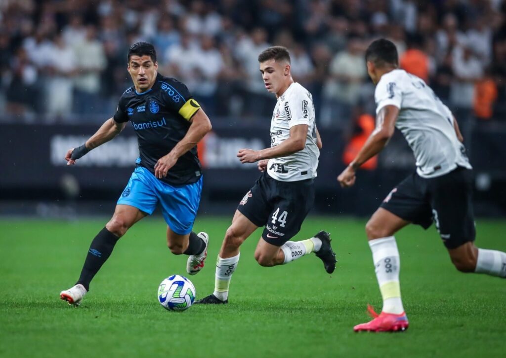 Grêmio e Corinthians disputaram em São Paulo, na noite dessa segunda-feira (18), o jogo adiado da 15ª rodada do Campeonato Brasileiro. A partida foi movimentada de ambos os lados e terminou com empate de 4 a 4. Nathan, Cristaldo, Everton Galdino e Luiz Suárez marcaram para o Tricolor gaúcho, que se mantém em terceiro lugar na tabela, com 40 pontos.