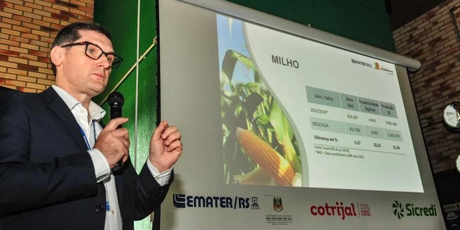 O milho foi a cultura que mais sofreu com os efeitos climáticos desta temporada. A área plantada da cultura encolheu 1,27%, perfazendo 812,79 mil hectares. Em comparação ao ciclo passado, o prognóstico da Emater é de produção de 5,2 milhões de toneladas, 31,54% a mais do que no ciclo passado, com produtividade 32,23% superior, estimada em 6.401 quilos por hectare. No milho silagem, destinado à produção pecuária, a perspectiva é de colheita de 12,37 milhões de toneladas, quantidade 37,38% acima da obtida na safra passada, apesar da redução de 10,05% na área plantada, fechada em 348,5 mil hectares, associada às condições climáticas que atrasaram o plantio. A produtividade esperada deve ter acréscimo de 52,43%, com 35.518 quilos por hectare.