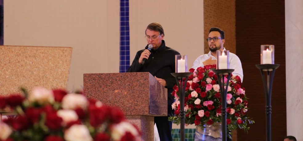 Depois do encerramento da missa, o presidente subiu no altar e tirou uma foto com o arcebispo Dom Orlando Brandes usando máscara. Na sequência, retirou o item de proteção e posou para uma nova foto com o ministro da Cidadania, João Roma, o padre Américo Dalbelo e o ministro da Ciência e Tecnologia, Marcos Pontes.
