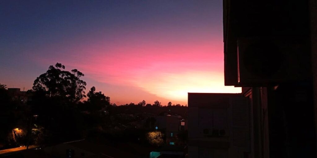 Em cidades de Santa Catarina e do Paraná, as cores foram mais visíveis ao amanhecer, já na segunda-feira. Em Porto Alegre, com o céu claro, favoreceu a aparição do fenômeno nesta terça-feira.