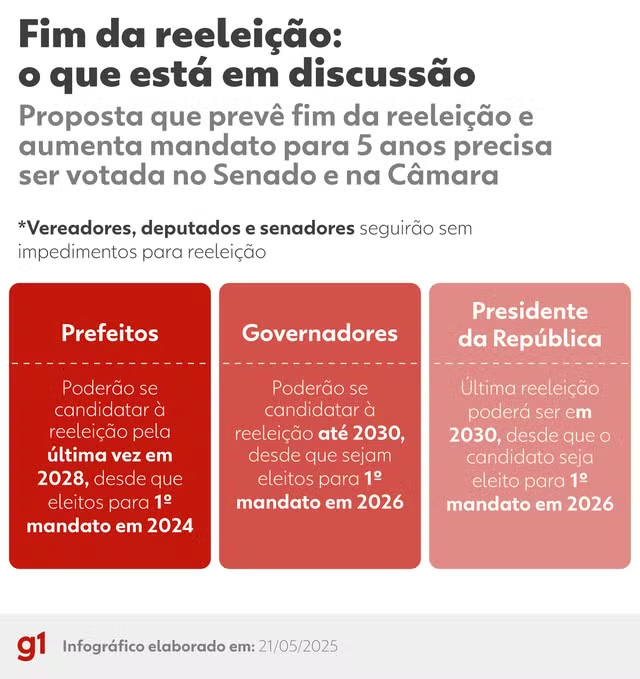 O texto estabelece o fim da reeleição em duas etapas: a partir de 2028 para prefeitos; e de 2030 para presidente e governadores. E vai além: