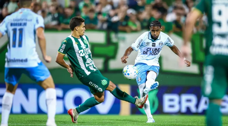 Durante a maior parte do primeiro tempo, o Grêmio demonstrou maior controle da partida e buscou criar mais oportunidades ofensivas. A equipe procurou explorar principalmente o lado esquerdo do campo, com movimentações que levaram perigo à defesa da Chapecoense. O atacante Amuzu foi um dos jogadores mais participativos nesse setor, contribuindo para a pressão inicial do time visitante.
