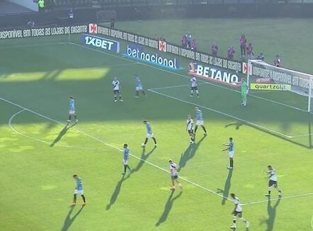 Dois minutos depois, o Vasco respondeu. Orellano recebeu na direita, puxou para o pé esquerdo e tentou a batida colocada. A bola saiu pela linha de fundo e não levou perigo para o goleiro gremista.
