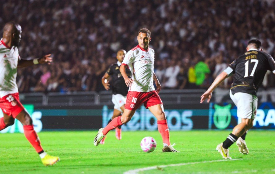 Embalado após aplicar 7 a 1 no Santos, o Inter chegou em São Januário como favorito contra um Vasco que vinha de derrota contra o Flamengo. O Cruzmaltino teve o controle das ações nos primeiros minutos da partida, embalado pela torcida que lotou o estádio nesta quinta-feira (26). Vegetti e Payet chegavam com perigo ao gol defendido pelo uruguaio Rochet. Gabriel Pec foi lançado pela direita e encontrou Vegetti que girou e bateu para Rochet espalmar. Na sobra, o argentino Gabriel Mercado impediu Payet de marcar. Aos poucos o Colorado foi equilibrando a partida e chegou ao primeiro gol.