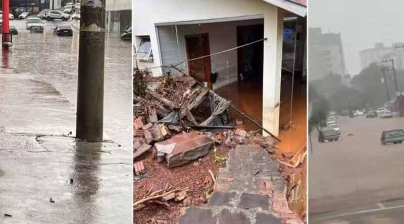 A intensidade da chuva comprometeu a infraestrutura urbana, com registros de asfalto cedendo em algumas vias. Veículos estacionados em ruas ficaram parcialmente submersos, além de alagamentos em residências e estabelecimentos comerciais.