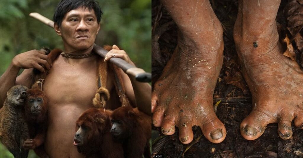Por exemplo, os integrantes desta civilização indígena possuem os pés totalmente diferentes do resto da humanidade. Eles são consideravelmente tortos, o que faz com que sejam mais convenientes para subir em árvores e perseguir de perto os macacos.