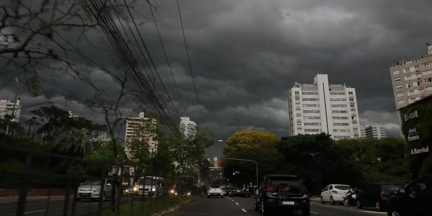 A nebulosidade aumenta, já durante a manhã, nas metades Sul e Oeste. Conforme a MetSul, as primeiras pancadas de chuva podem ocorrer no turno da manhã nos municípios de fronteira com o Uruguai. Há risco de temporais, inclusive.