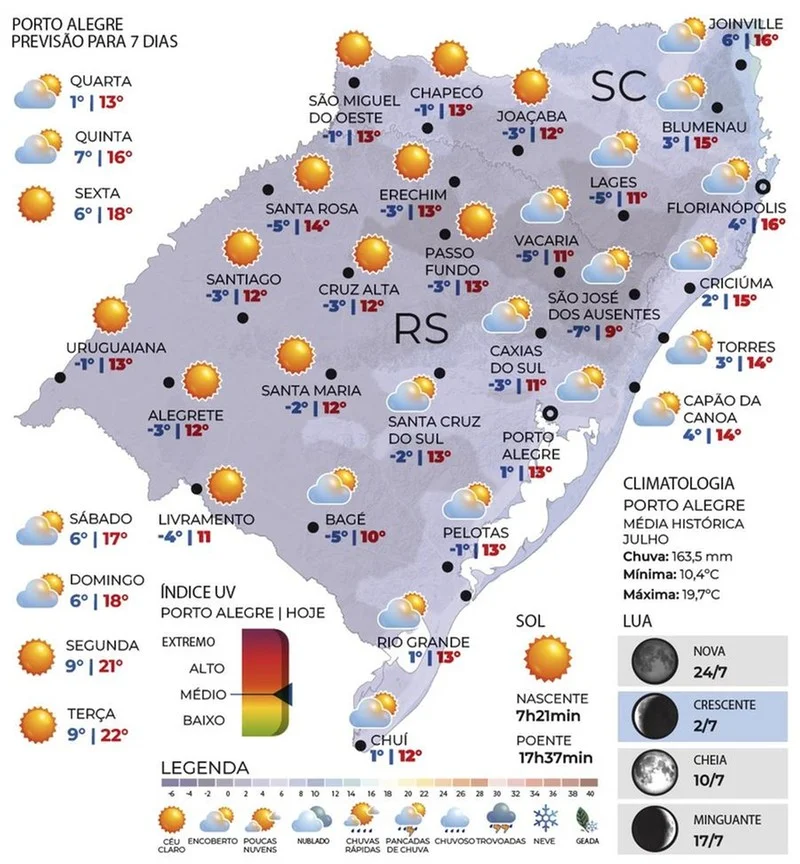Mínimas e máximas pelo RS: