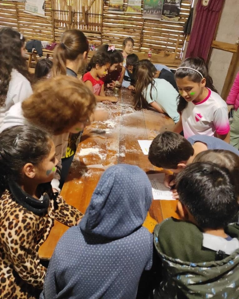 Ao final do encontro houve uma caça ao tesouro onde cada criança ganhou uma caneta multicor e foi entregue um lanche cheio de guloseimas.