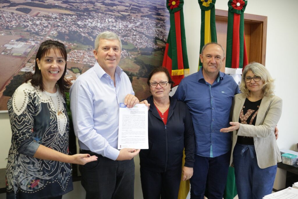 prefeito de Tapejara Evanir Wolff (BIG) assinou, na quarta-feira (23), o termo de fomento nº 002/2022, celebrado entre o município e o Grupo Integrado da Terceira Idade (Giti). O documento estabelece o repasse de recursos na ordem de R$ 108.820,00 para serem utilizados pela entidade com o objetivo de manter as atividades programadas ao longo deste ano, além do custeio com integrações, passeios, viagens e contratação de professores de educação-física, música e dança. Além do repasse de recursos, o governo municipal também cede o trabalho de um servidor público a fim de auxiliar o grupo com as questões administrativas. Além disso, o salão, anexo ao Centro Cultural José Maria Vigo da Silveira, onde são realizadas as atividades envolvendo também o coral e o grupo de danças do Giti, também faz parte das ações de incentivo ao grupo. De acordo com BIG, as atividades do Giti contribuem, de forma significativa, para a promoção do bem-estar e da saúde na melhor idade. “O trabalho que é desempenhado pelo grupo é fantástico e a Administração Municipal é e sempre será parceria desta entidade, apoiando as diferentes causas e ações ”, destacou. Também participaram do ato, o vice-prefeito Rodinei Bruel (Gipe); a secretária de Assistência Social, Adriana Bueno Artuzi; a coordenadora do Giti, Juceli Melara e a presidente do grupo, Dilva Sasset.
