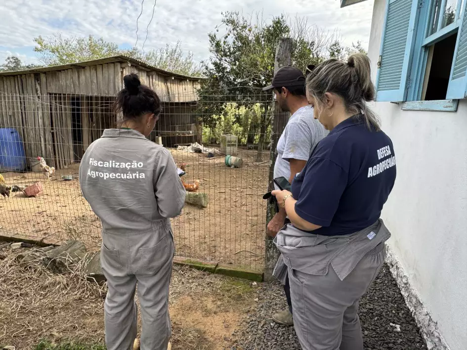 O governo do Rio Grande do Sul, por meio do Departamento de Vigilância e Defesa Sanitária Animal da Secretaria da Agricultura, Pecuária, Produção Sustentável e Irrigação, já vistoriou 300 propriedades rurais e uma granja de recria de aves no raio de até dez quilômetros do foco de influenza aviária em Montenegro, no Vale do Rio Caí.