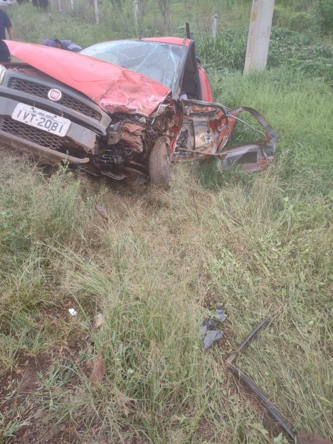 Na Fiat Strada estava o motorista, de iniciais A.C, com 25 anos, também preso às ferragens e mais a caroneira.