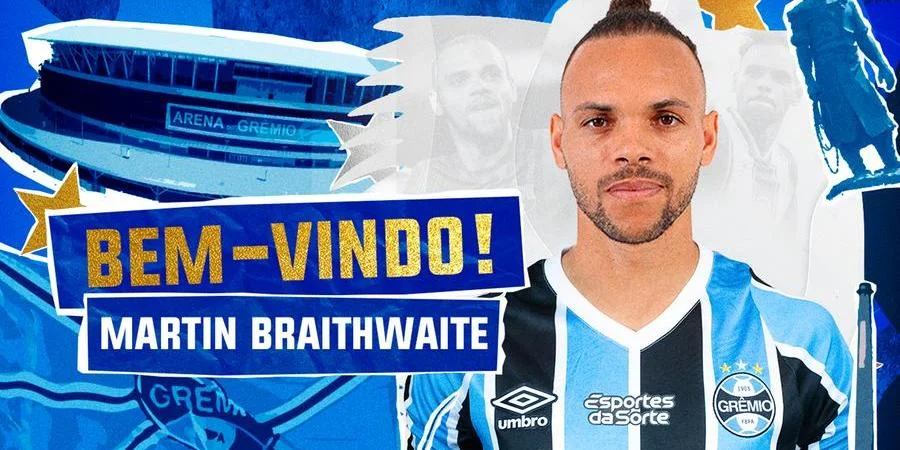 O Grêmio anunciou no final da manhã desta quarta-feira a contratação de Martin Braithwaite. O centroavante dinamarquês irá reforçar o setor ofensivo do time comandado por Renato Portaluppi.