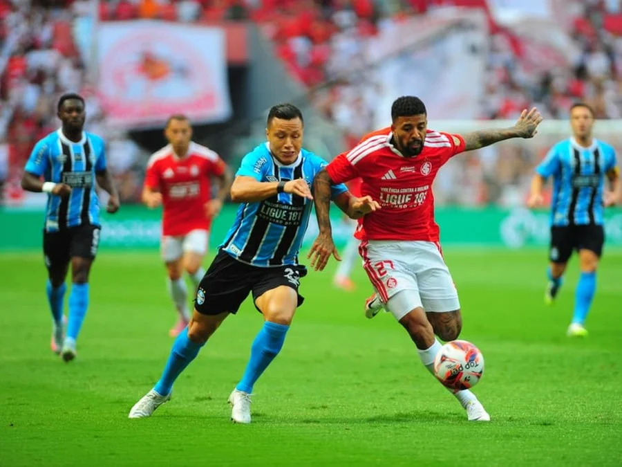 Aos 12 minutos, Carbonero recebeu passe de Alan Patrick e ficou frente a frente com Weverton. O colombiano finalizou, mas o goleiro gremista fez grande defesa. O Inter manteve a pressão e, no lance seguinte, Victor Gabriel quase marcou de cabeça após cobrança de escanteio. Em seguida, aos 35 minutos, Vitinho cruzou rasteiro para a área e Borré não conseguiu completar, desperdiçando outra oportunidade para abrir o placar.