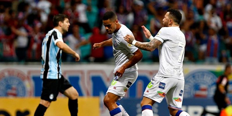 O desequilíbrio emocional do Grêmio ficou evidente em um lance aparentemente despretensioso. Vanderson, na pressa de cobrar um lateral rápido, arremessou a bola no rosto do marcador do Bahia. Pelo lance, levou amarelo. A única boa jogada do Grêmio foi aos 41, em uma trama entre Borja e Alisson. A finalização do meia foi defendida por Danilo Fernandes, que espalmou para escanteio e manteve o 2 a 0 para os donos da casa ao intervalo.