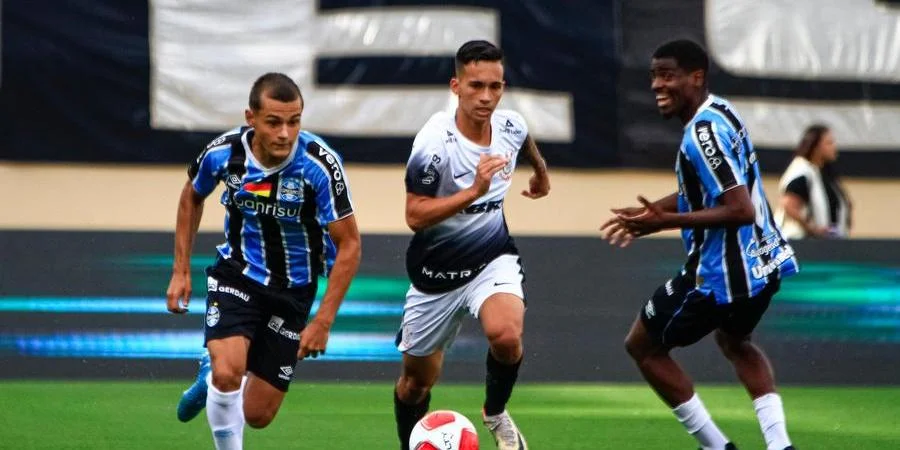 Era tudo ou nada. Por isso, ambos os times começaram a partida com os nervos a flor da pele. Com apenas um minuto de jogo, foi o Grêmio que ameaçou o gol paulista. Hiago serviu Jeferson, que invadiu a área e saiu cara a cara com o goleiro. Para a sorte do Corinthians, o camisa 1 gremista fechou o ângulo e desviou para escanteio. Dois minutos depois, os paulistas responderam. Após boas trocas de passes, Gui Negão recebeu na área e ajeitou de calcanhar para Nicollas, que finalizou em cima do zagueiro adversário.