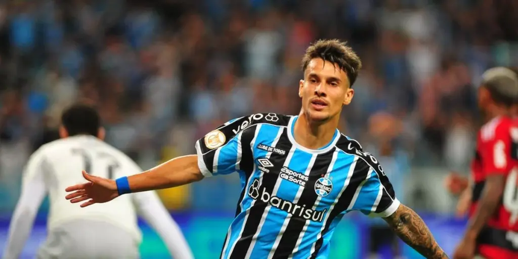Sem Suárez, Renato recorreu ao atacante João Pedro Galvão para comandar o ataque. Voltando de lesão, o ítalo-brasileiro foi a novidade na escalação que manteve os três zagueiros. O esquema quase cedeu logo no primeiro ataque do duelo. Everton Cebolinha levou vantagem contra o lateral João Pedro e fez a bola chegar até Arrascaeta. O uruguaio finalizou cruzado para Gerson. Da pequena área, ele tocou por cima do gol. O time gremista respondeu com Villasanti de fora da área nas mãos do goleiro Rossi.
