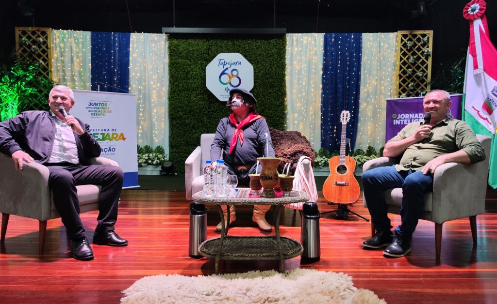 Além da palestra, a tarde contou com um momento de interação especial. O prefeito Evanir Wolff (Big) e o vice-prefeito Rodinei Bruel (Gipe) participaram da gravação de um podcast conduzido pelo Guri de Uruguaiana. Durante a conversa descontraída, foram abordados diversos assuntos, incluindo as atividades e ações realizadas pelo governo municipal. A interatividade com o público presente e as músicas também proporcionaram momentos de descontração e integração.