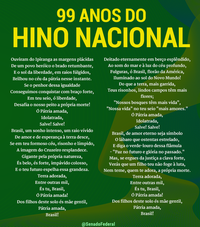 Quem aí sabe cantar o Hino Nacional sem tropeços? Hoje, 06 de setembro de 2021 a letra completa exatos 99 anos.