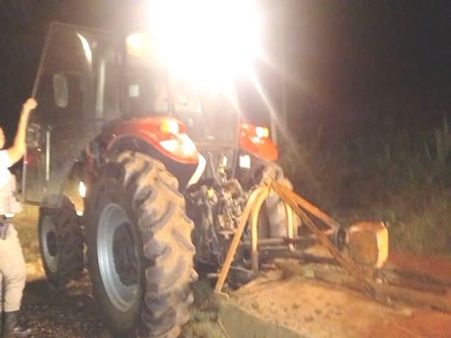 Era por volta das 04:00 horas, quando os PMs em patrulhamento localizaram um trator de cor vermelha trafegando de forma desalinhada pela rodovia, ou seja, de um lado para outro. Inclusive na contramão de direção.